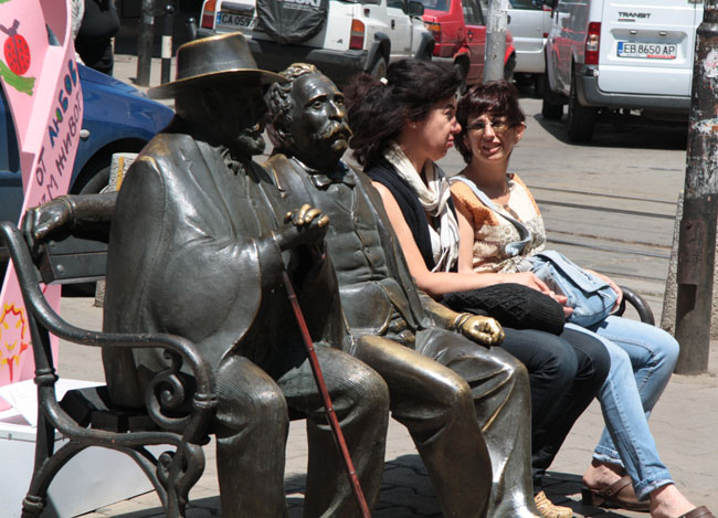 Relaxing after the changing of the guard, outside Sofia's government buildings