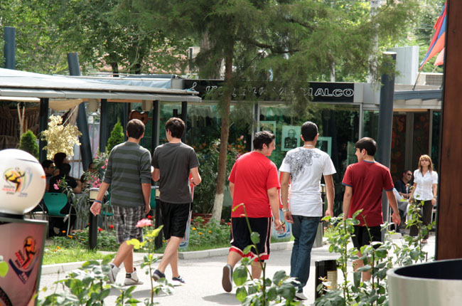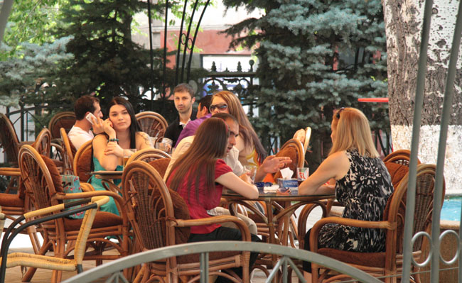 Cappucino quaffers in one of Yerevan's innumerable cafes