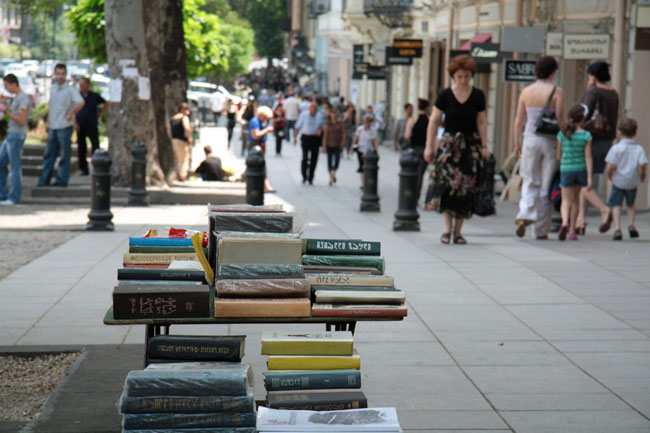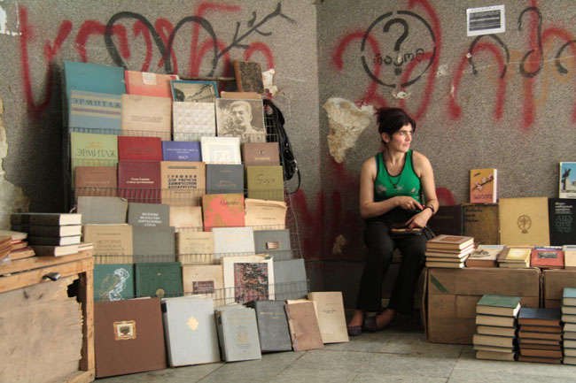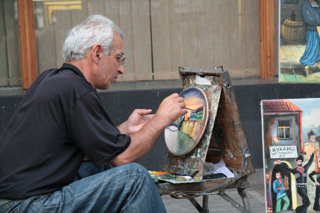 Aritisan at work under the cinema's arches, Rustavelli Avenue