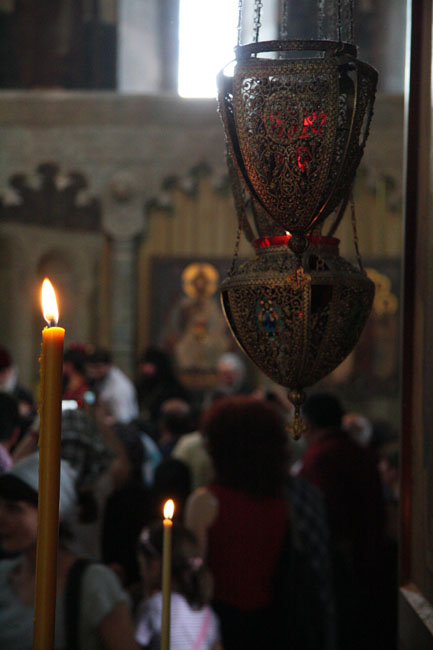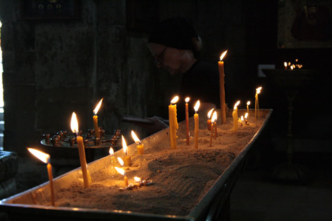 Candles left by worshippers inside the Svetitskhoveli Cathedral