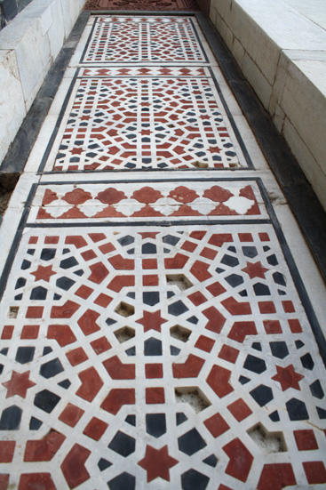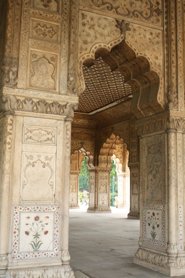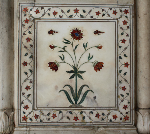 Ornate inlay work typical of Mughal architecture (1600's), The Red Fort