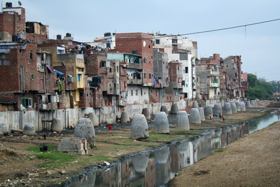 Canal running alongside the outskirts of Nizamuddin, typical inner city squalor