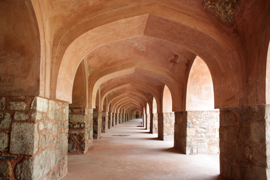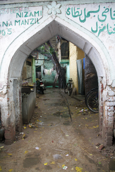 A tatty arch leading into the backstreets of Nizamuddin, the Sufi village in Delhi