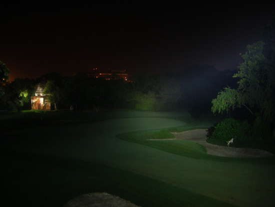 Delhi Golf Course at night, from the clubhouse verandah. Note the ruin by the green