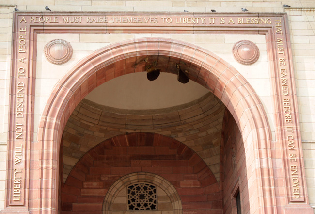 Inscription above the British-built Secretariat - ordered by Lutyens, the architect & not our finest moment