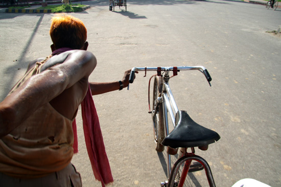 One of our cycle wallahs - no gears here, this is how they get us up hill