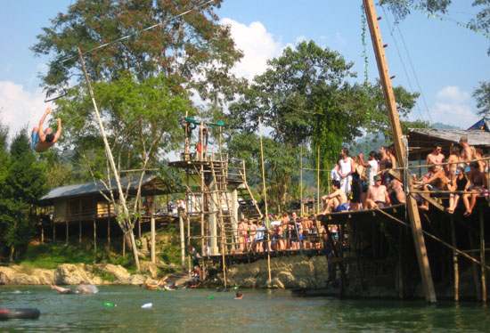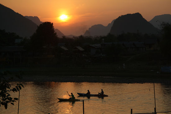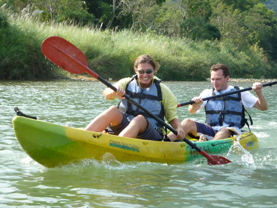 Kayaking in Vang Vieng - note the nerdy life jackets...