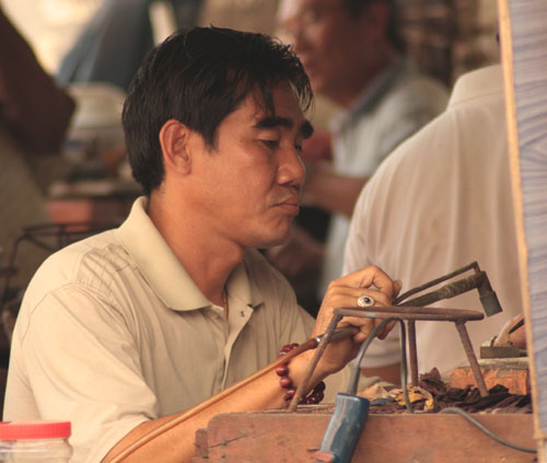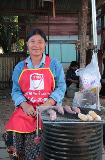 Grilled banana vendor in Savannakhet (they're better raw!)