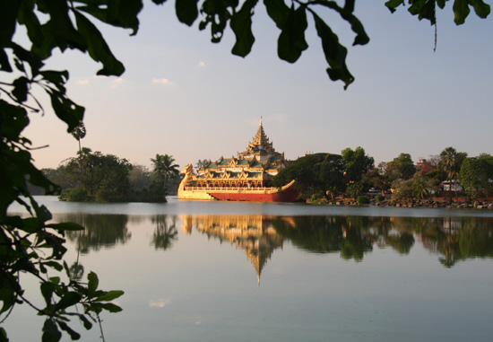 Concrete repro of the ancient royal barge, Inye Lake, Yangon