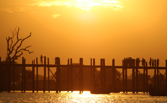 Sunset over U Bein's Bridge (the world's longest teak bridge)