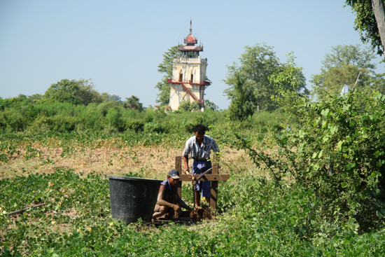 Pumping water from a well to irrigate a peanut crop, Amarapura