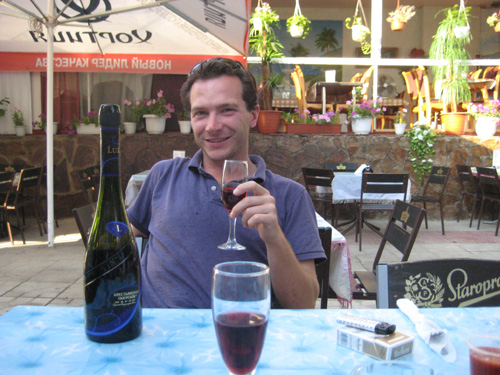Enjoying Russia's finest Merlot, chilled, in 42C heat in Volgograd. 4 quid a bottle!