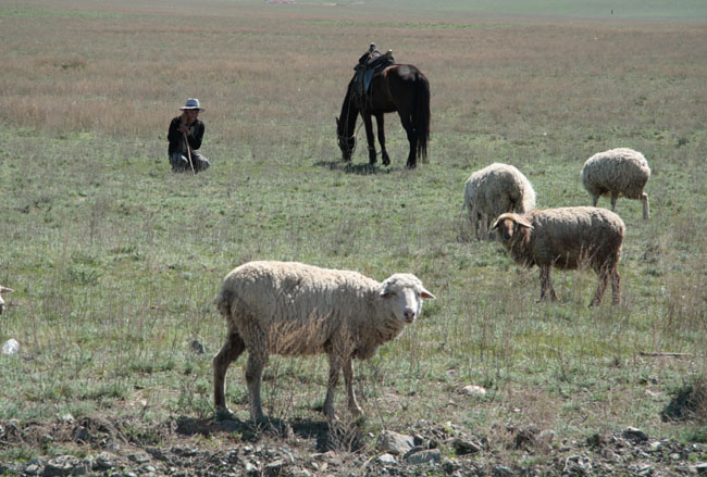 Herders outside a village