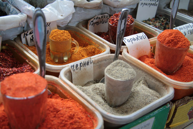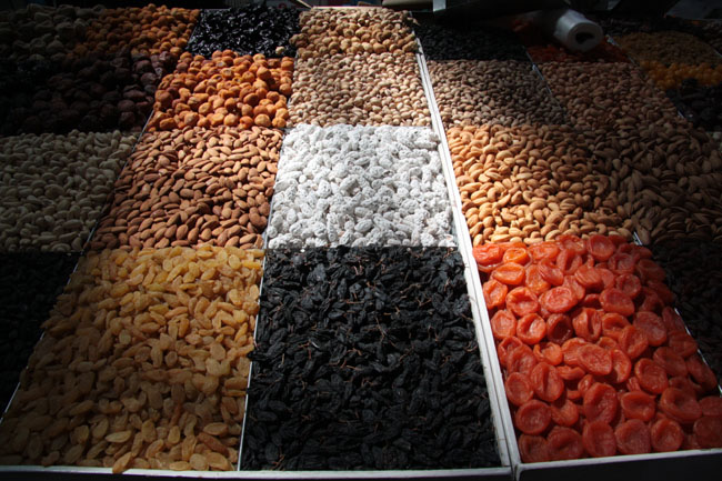 Dried fruits and nuts at the Zelyony Bazaar (Green Market)