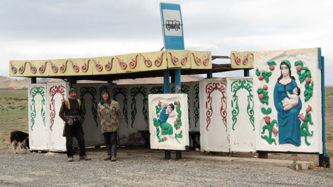 Decorative bus stops - presumably to help while away the hours