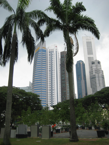 Palm trees, rain trees, then skyscrapers - typical Singapore