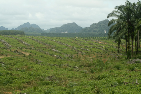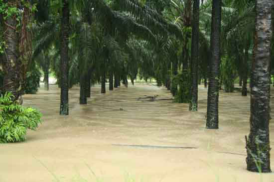 Rather damp palm oil plantation