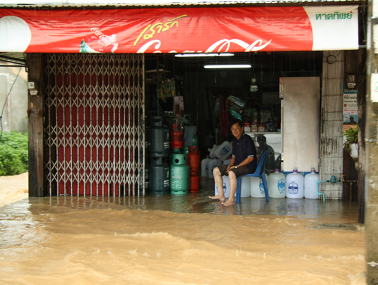 One of Khlong Ngae's residents battling through a side street