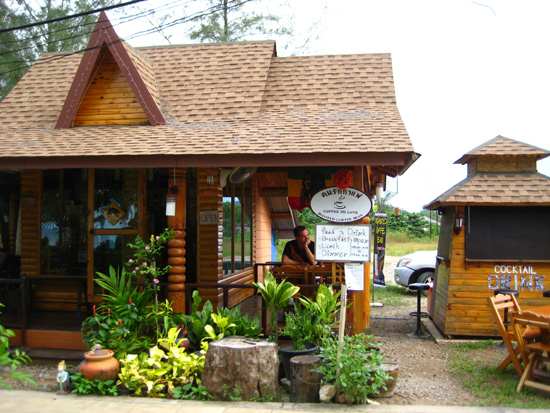 Enjoying a morning coffee in the quietest place we could find