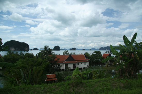 Phang Nga NP, trendy new tourist villas in the foreground