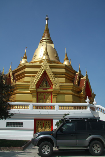 Car undergoing conversion course at Buddhist monastery near Phetchaburi