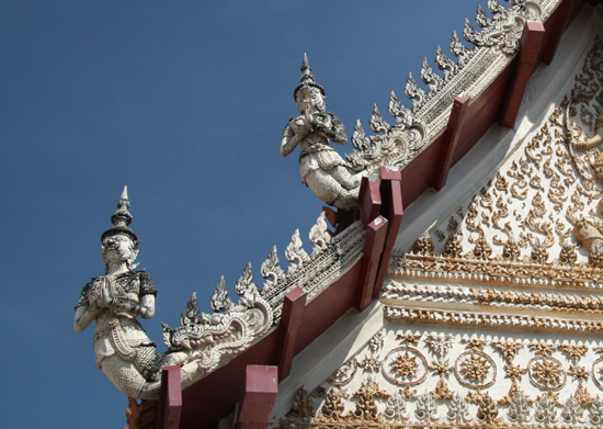 Mythical creatures adorning the eaves of Wat Mahathat