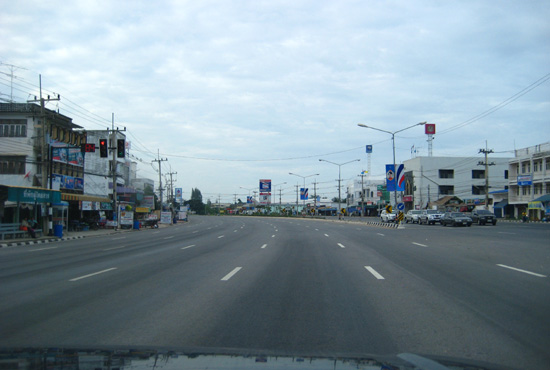 Unnecessarily large road through a typical Thai town