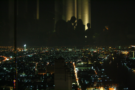 Enjoying the view at the most pretentious bar we've found yet