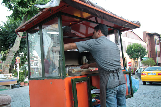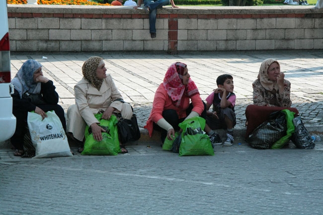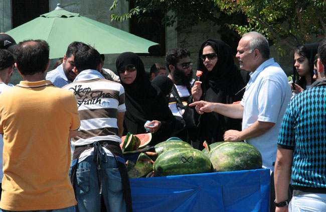 Locals crowding the watermelon vendor, outside the Blue Mosque