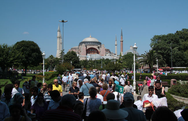 Islamic hoardings, hastily erected in 1453 to Islamify this former cathedral