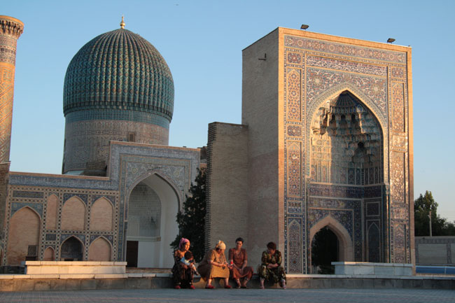 Locals chatting outside Gur-I-Amir, Tamurlane's mausoleum