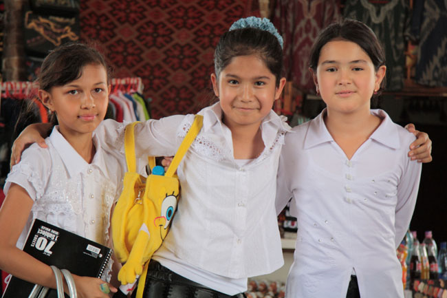 Bukhara schoolchildren, already well versed in posing