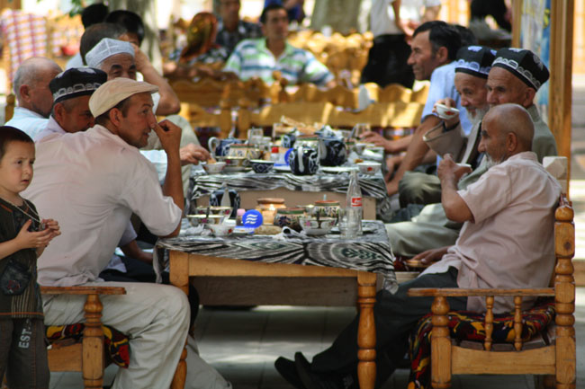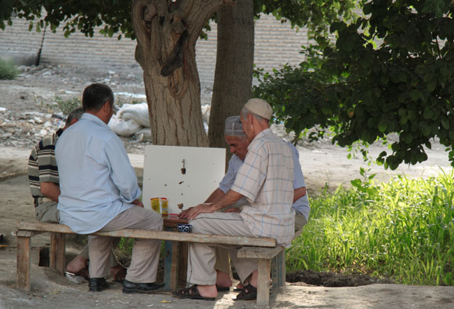 Bukhara's elders enjoying chi around Lyab-I-Hauz