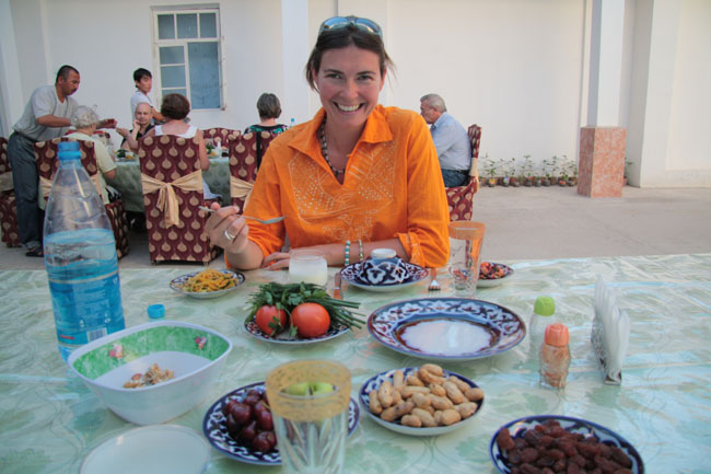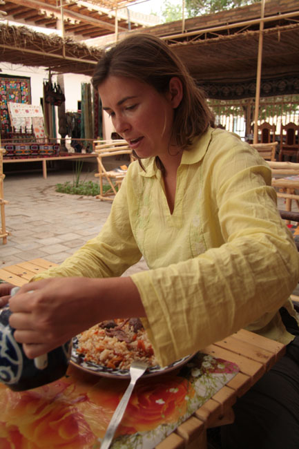 Getting stuck into chi and plov in a chaikhana, Khiva