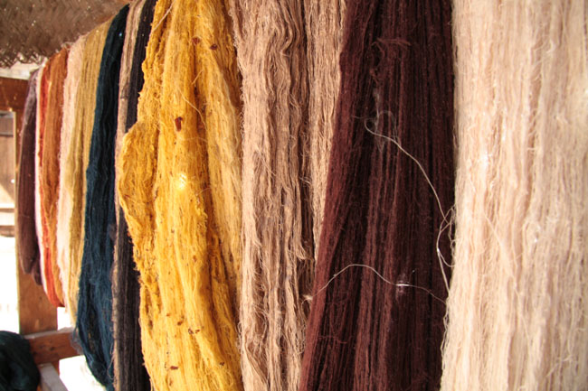 Freshly dyed silk, ready for spinning