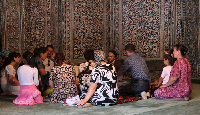Devotees in the Pakhlavan Mahmud Mausoleum, Khiva
