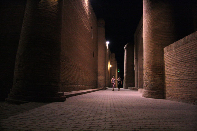 Khiva's backstreets by night