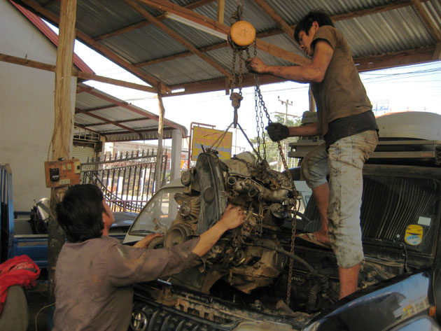 How many Lao mechanics does it take to put an engine back in? Not enough...